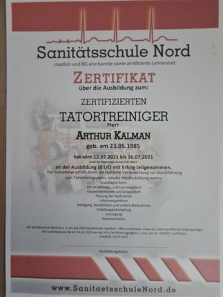 Ihre Experte und (zertifizierter Tatortreiniger) wenn es um Reinigung und Desinfektion von Leichenfundorten geht.